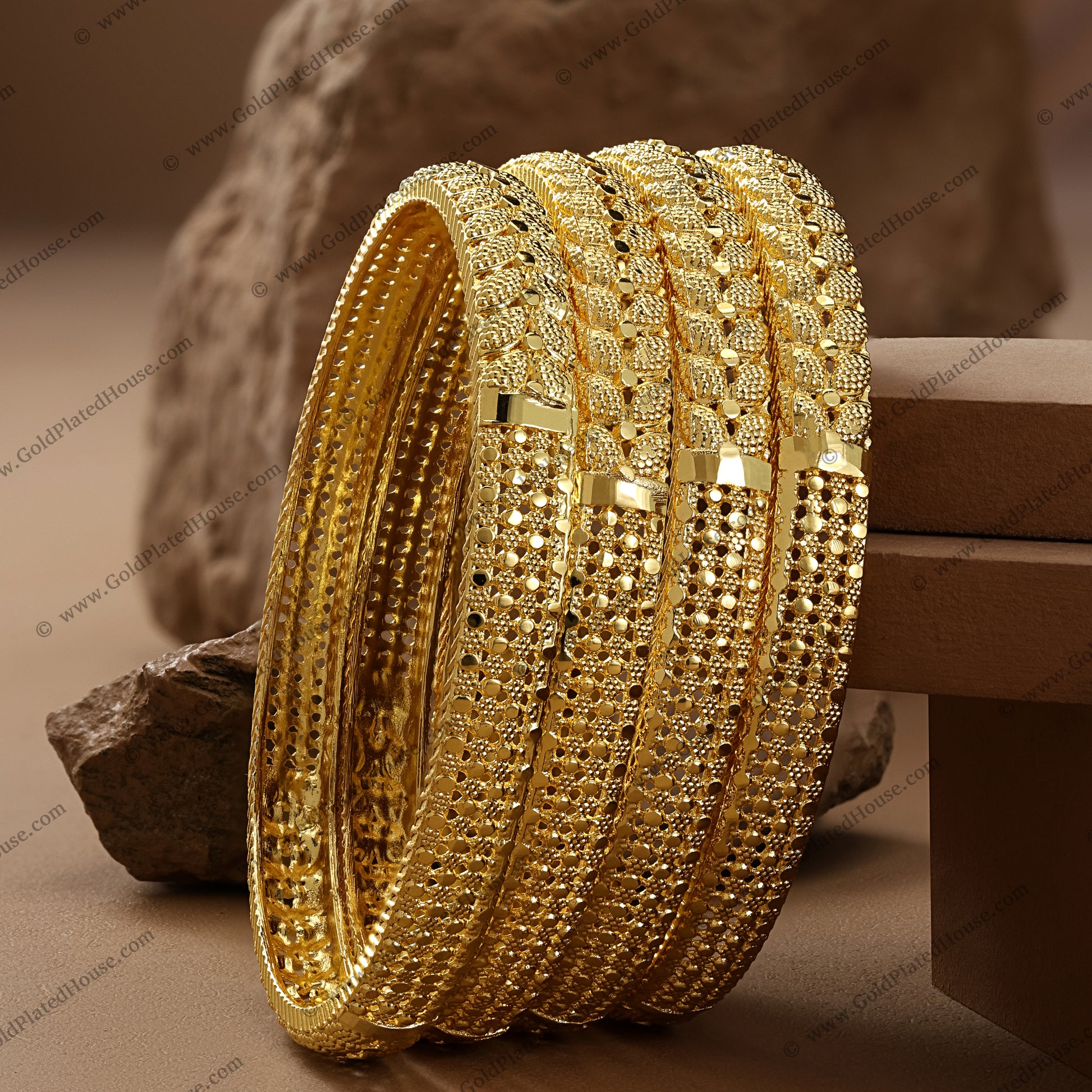 Experience the profound artistry and practical durability of this stunning bangle set from Gold Plated House.