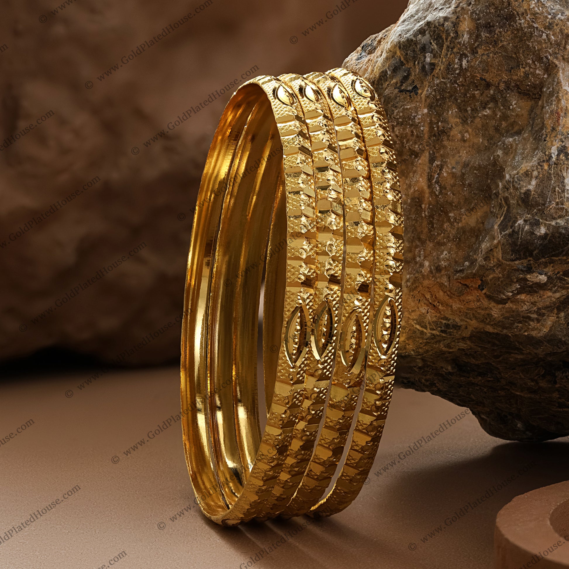 Experience the perfect fusion of enduring style and unparalleled practicality with this stunning bangle set from Gold Plated House.